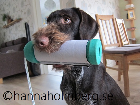 Det f�rsta korta kastet blev lite f�rsiktigt i b�de ig�ng och grepp, men hon lyckades genomf�ra det bra �nd�. Dum som jag var s� bad jag om ett l�ngre kast n�sta g�ng, knappa 10 meter ut. Alfa gick ut till simdjup men ville inte g� l�ngre. Naturligtvis ett f�r stort steg. Matte fick jobba en stund och fylla st�vlarna med vatten men tillslut s� l�ste hon �ven den apporten. Eftersom jag vill avsluta de �vningar jag g�r med att hunden lyckas s� blev vi tvungna att k�ra en g�ng till. Alfas livs tredje vattenapport f�r ni se p� filmen nedan. L�gg m�rke till hundf�rarens bl�ta byxor samt alla mygg som g�rna vill suga blod fr�n personen som filmar. Jag har alltid pratat mycket till mina hundar och det m�rker man nog h�r ocks�. H�ll till godo :-)