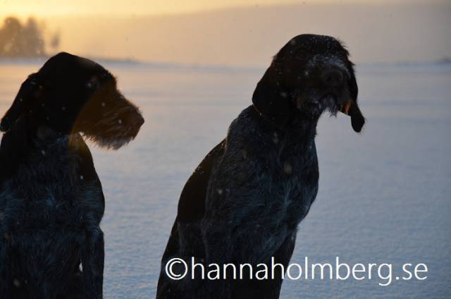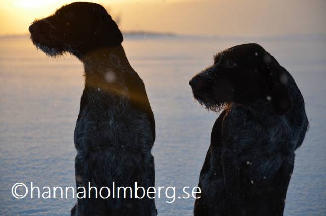 Hon �r fortfarande ganska livlig och n�got olydig. Jag har en kompis vars hundar �r ganska livliga hemma men grymma p� jakt. Det �r min tr�st. �ven om jag har mycket annat omkring mig s� har jag �ven lite medvetet inte drillat Alfa lika h�rt som Gira med tanke p� de nitar jag gick p� just p� grund av det. Alfa ska f� vara Alfa till stora delar s� l�nge hon vet vad stanna, hit, nej och apport betyder. Resten, det jaktliga, b�r ligga i generna bortsett fr�n de delar som m�ste till med hj�lp av erfarenhet. Vi f�r v�l se om jag �ngrar de lite mer fria tyglarna i efterhand.