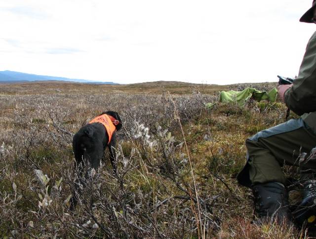 Precis s� h�r verkar det vara med britter. Man st�ller sig p� en bra utsiktspost och ser p� medan hunden s�ker av marken. I ringen, l�ngt nere i dalen syns hunden.