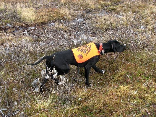 Dagens enda st�nd p� bild med den norska pointern Karacanis Chili