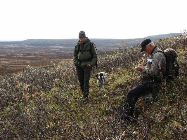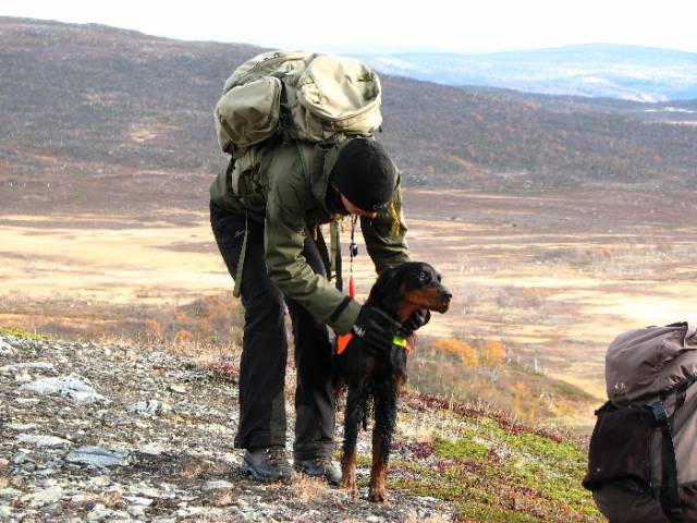 Bernt Perstr�m och den engelska settern H�gfj�llshundens Head tar igen sig en stund p� fj�llsluttningen.
