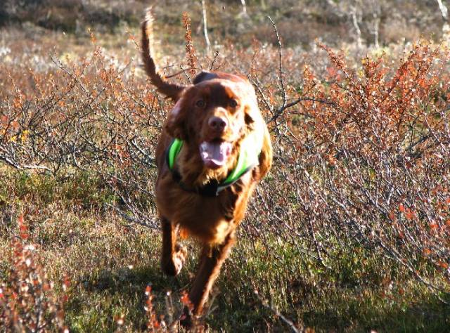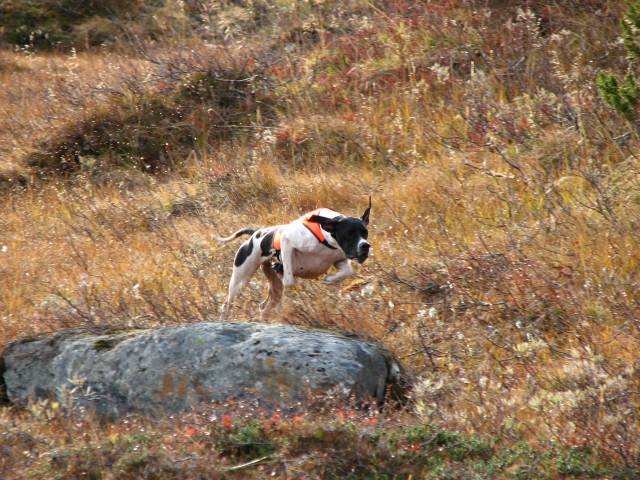 Jag m�ste s�ga att britter p� fj�ll var en vacker syn, fart och stil. Det spelade ingen roll om det gick upp eller ner, farten var densamma. S�ket kan minst sagt beskrivas som stort. Otroligt vilken yta de f�r med sig. Ibland var hundarna som prickar p� fj�llsluttningen.