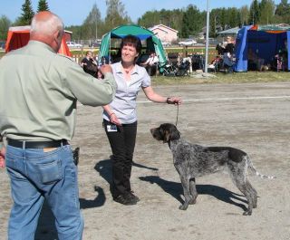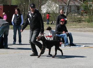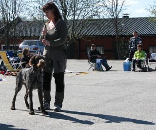 Dagen resulterade i 150 po�ng med betyg 5 p� f�lt och 10 p� apporten. Med tanke p� omst�ndigheterna s� �r jag supern�jd med ett 2:a pris. V�r f�rsta svenska premiering. Ser man dessutom p� att det av f�r dagen ca 60 startande hundar endast delades ut 8 pris med 4 ettor och 4 tv�or s� �r v�rt resultat j�ttebra.