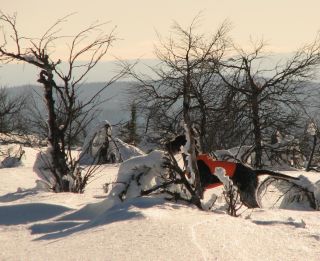 Helgen innan �kte vi upp till fj�lls. Det var ett riktigt skitv�der med regn och bl�st. Min egen kondition efter f�rlossningen hade jag kontrollerat innan med att en g�ng g� hela 6 km l�ngs v�r grusv�g. Trots att jag hade tr�ningsv�rk i tv� dagar s� lyckades jag p� n�got underligt vis intala mig sj�lv om att jag orkade med en hel helgs jakt p� fj�llet. T�nka sig???