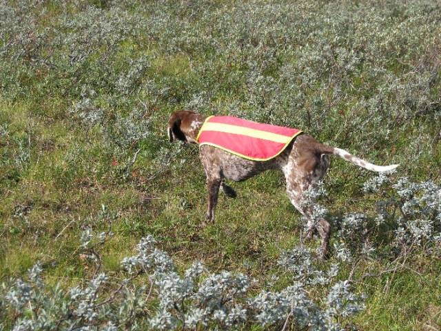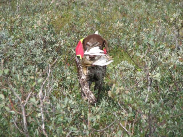 Atlas hade inte apporterat varm ripa innan denna helg. N�r jag f�llde den f�rsta gjorde jag precis som vi tr�nat p� kall f�gel och skickade honom p� apport. Jag kan s�ga att det var �kta sann gl�dje n�r han stolt och med viftande svans kom fram till mig och formligen bj�d mig f�geln. Han apporterade sedan alla f�glar vi f�llde.