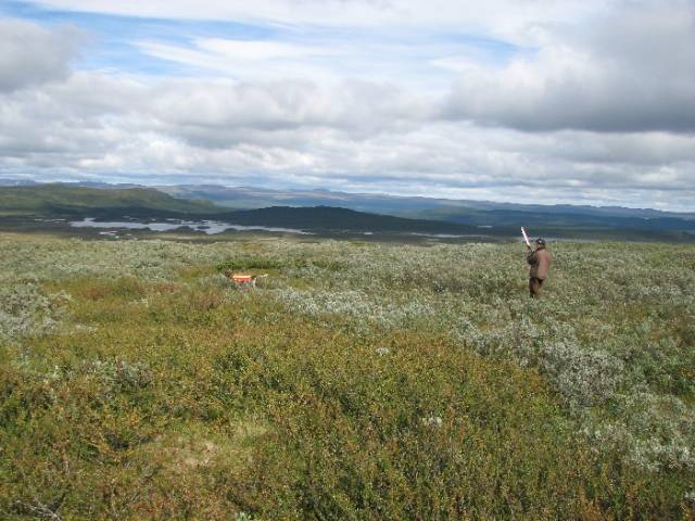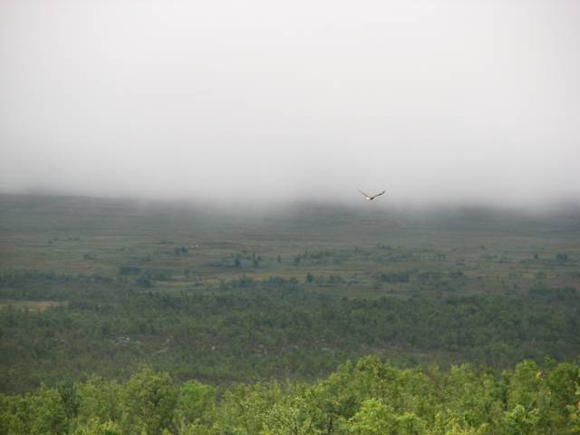 L�rdagen s�g ut s� h�r med l�gt tak, regn och mycket rovf�gel. P� bilden syns en av de tv� fj�llvr�kar vi s�g. �ven tv� kungs�rnar och ett antal jaktfalkar visade sig under helgen. Som tur �r finns det mycket sork och l�mmel i �r s� att riporna inte utg�r det enda bytet.