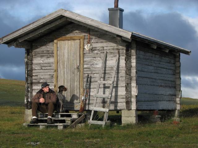 Vi �vernattade p� kalfj�llet i denna underbara stuga. Det var ov�rderligt med v�rme och torkm�jligheter. Allt var bl�tt.
