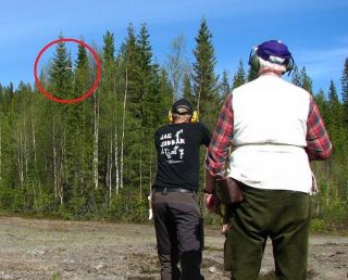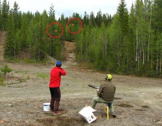 Linjen (som vid ripinventering bara finns i tanken och p� krata/gps) skall placeras mellan benen. Det vinkelr�ta avst�ndet till ripan (h�r gul boll) skall m�tas i cm.
