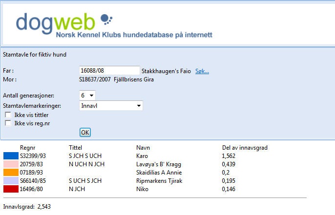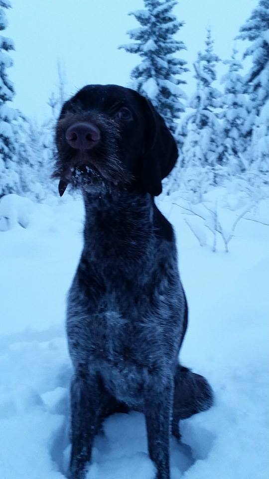 Till Giras andra kull sökte jag en hane som var väldigt lik Gira - lättdresserad, hög samarbetsförmåga och en jaktlig bredd på flera underlag. Det mesta av detta hittade jag i Stakkhaugen's Faio. Faio har dessutom "nordiska" linjer och delar några välkända norrlandshundar med Gira i linjerna bakom. Ägaren Ellen Marie Imshaug har själv beskrivit honom här.